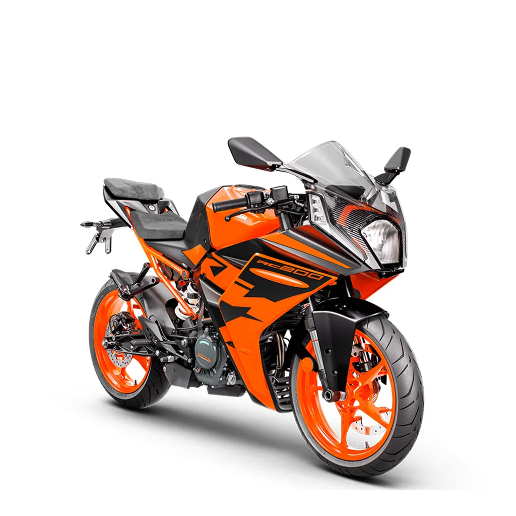 The 2024 KTM RC 200 is a sporty motorcycle that combines race-inspired design with everyday usability. It features a 199.50 cc liquid-cooled engine with fuel injection, delivering 25 PS of power at 10,000 rpm and 19.2 Nm of torque at 8,000 rpm. The bike's aerodynamic bodywork, inspired by the KTM RC16 racer, provides class-leading wind protection and improved aerodynamics, contributing to a higher top speed.